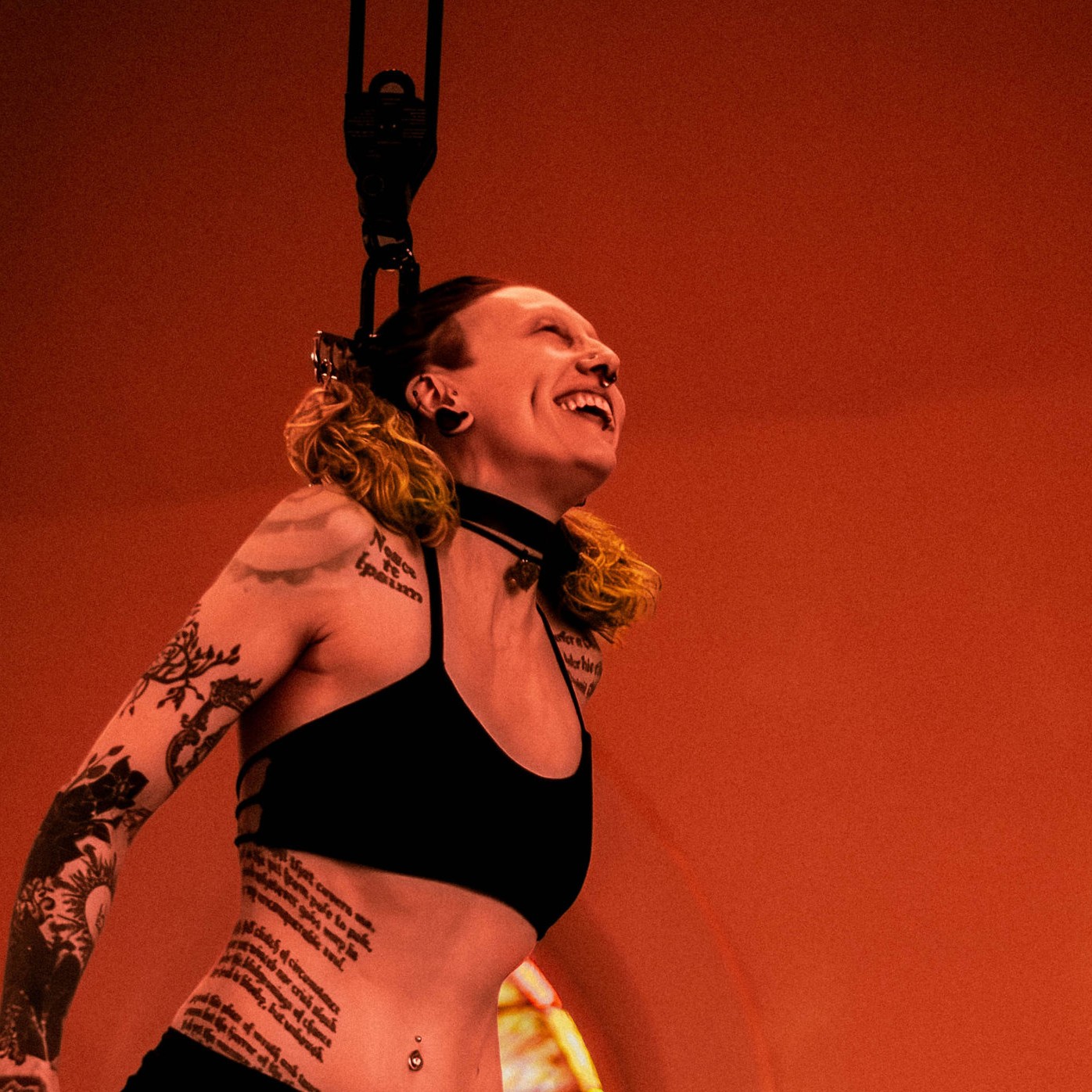 EMILIJA: I am quite light at under 130lbs, but have witnessed individuals over 300lbs suspend without any tearing or complications whatsoever. It really is more about the proficiency of the practitioner and the number/placement of hooks and the rigging than it is anything to do with weight of the suspendee.