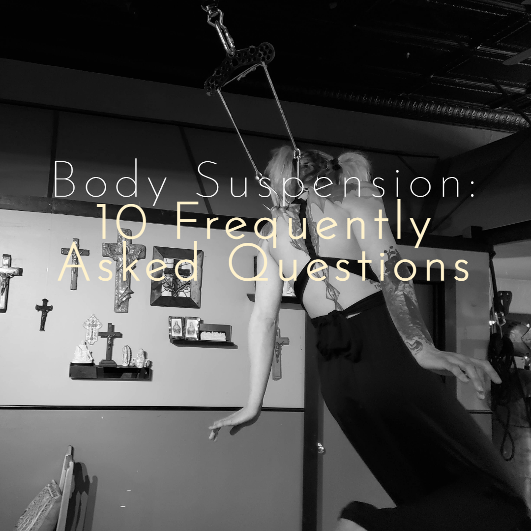 Below are ten frequently asked questions regarding the practice of body suspension. We have answered these from a high-level perspective but we are also including several personal insights to provide a broader view. Arrow, who has been suspending people as part of a professional team for 14 years, will share his viewpoint as a practitioner. Emilija will share her perspective as a veteran flyer who has suspended over 15 times, and Chris will contribute his experience as someone who has suspended fewer than five times.
